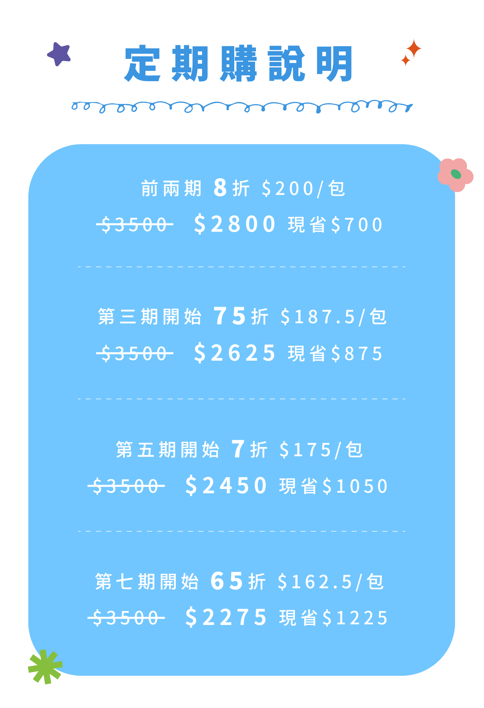 每期優惠將直接於訂單結帳時自動扣除